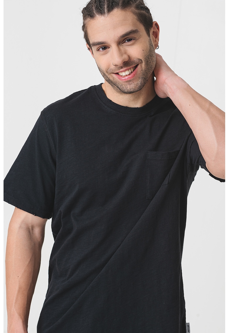 Caracteristici Culoare: negru Imprimeu: uni Material: bumbac Croiala: regular fit Model: decolteu la baza gatului Lungime maneca: maneca scurta Compozitie Exterior: 100% bumbac Info model Modelul poarta un produs de marimea M. Marimi model: 179 cm inaltime