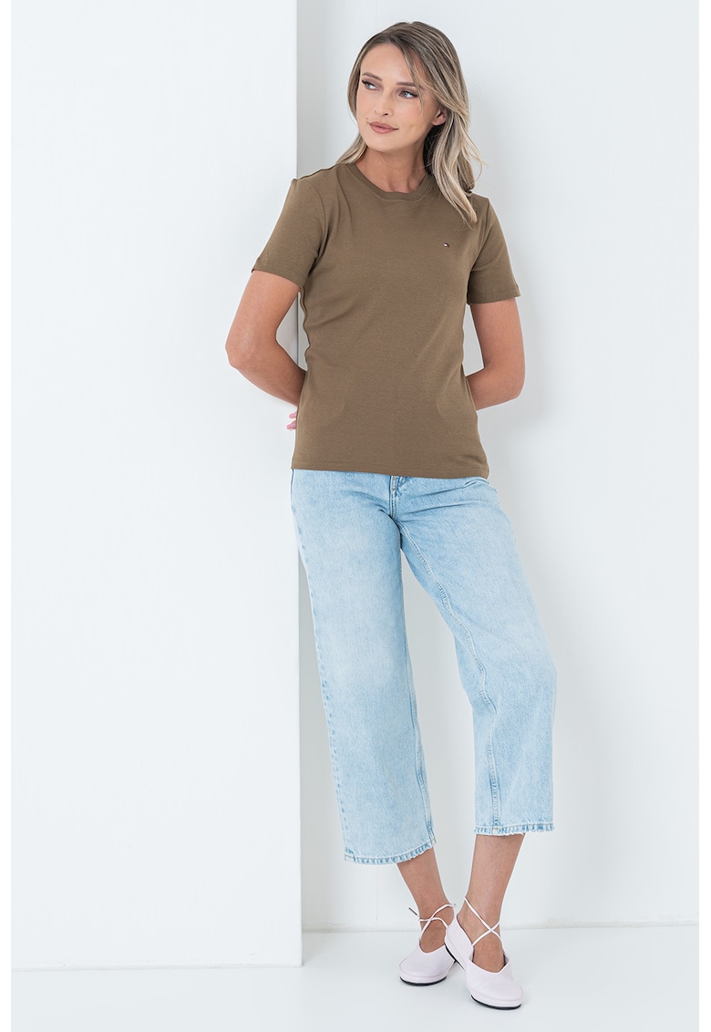Caracteristici Culoare: kaki Imprimeu: uni Material: bumbac Croiala: regular fit Model: decolteu la baza gatului Lungime maneca: maneca scurta Compozitie Exterior: 100% bumbac Info model Modelul poarta un produs de marimea S. Marimi model: 174 cm inaltime