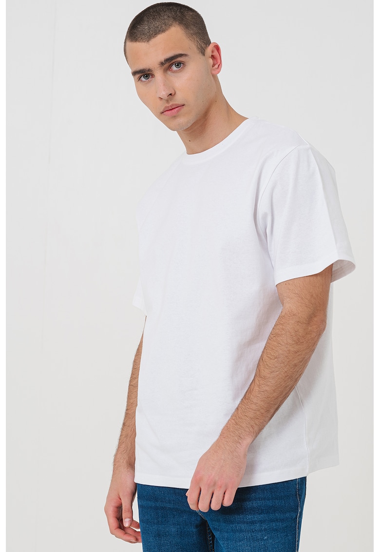- albastru Imprimeu: grafic Material: bumbac Croiala: regular fit Model: decolteu la baza gatului Lungime maneca: maneca scurta Compozitie Exterior: 100% bumbac Info model Modelul poarta un produs de marimea M. Marimi model: 184 cm inaltime
