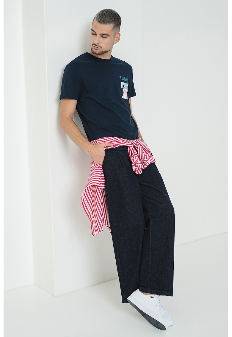 - bleumarin Imprimeu: logo Material: bumbac Croiala: regular fit Model: decolteu la baza gatului Lungime maneca: maneca scurta Compozitie Exterior: 100% bumbac Info model Modelul poarta un produs de marimea M. Marimi model: 190 cm inaltime