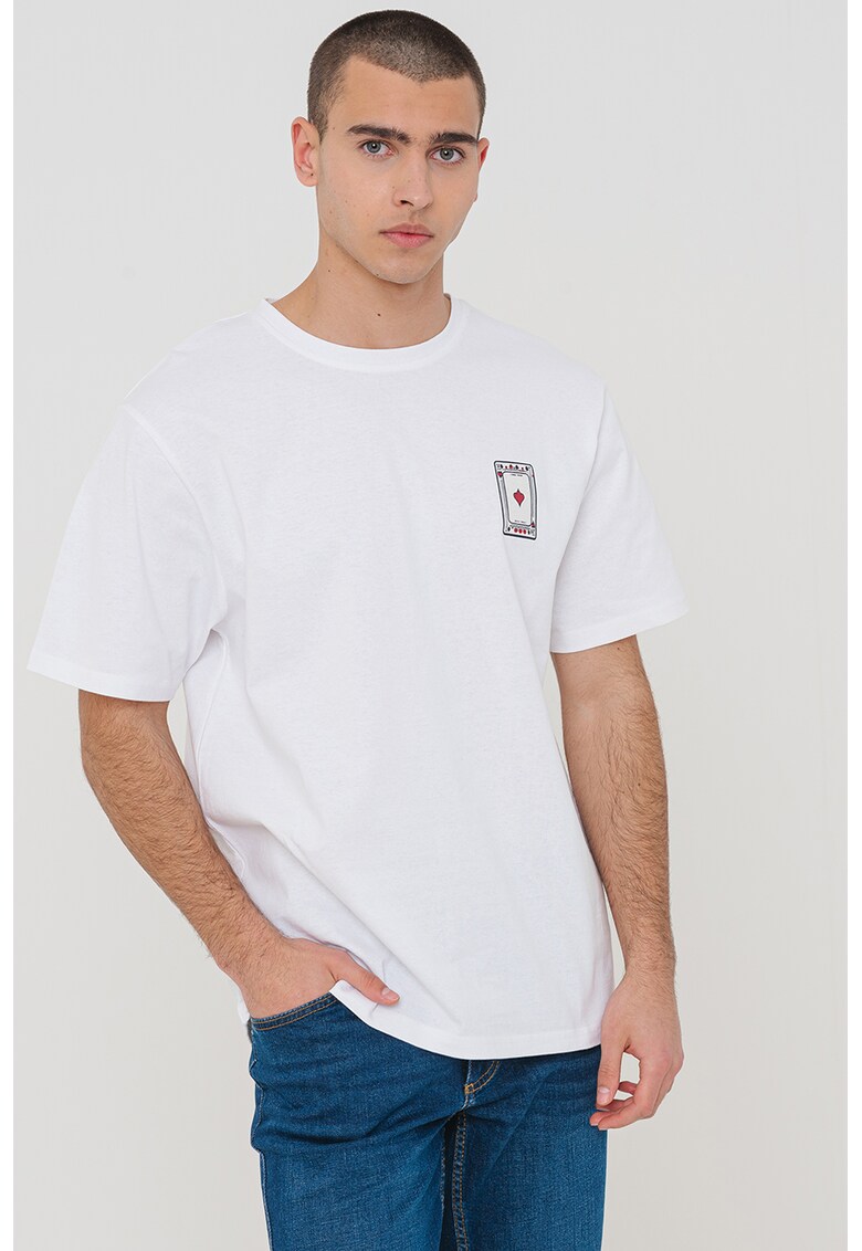 - negru Imprimeu: text Material: bumbac Croiala: regular fit Model: decolteu la baza gatului Lungime maneca: maneca scurta Compozitie Exterior: 100% bumbac Info model Modelul poarta un produs de marimea M. Marimi model: 184 cm inaltime