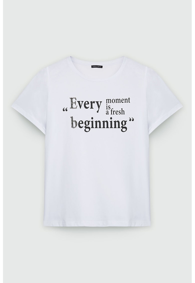 - negru Imprimeu: text Material: bumbac Croiala: curvy Model: decolteu la baza gatului Lungime maneca: maneca scurta Detalii: acest produs se adreseaza femeilor cu forme pline (plus size). Compozitie Exterior: 100% bumbac