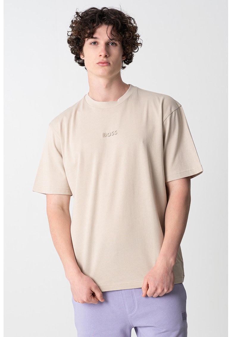 Caracteristici Culoare: bej Imprimeu: logo Material: bumbac Croiala: regular fit Model: decolteu la baza gatului Lungime maneca: maneca medie Compozitie Exterior: 100% bumbac Info model Modelul poarta un produs de marimea M. Marimi model: 189 cm inaltime