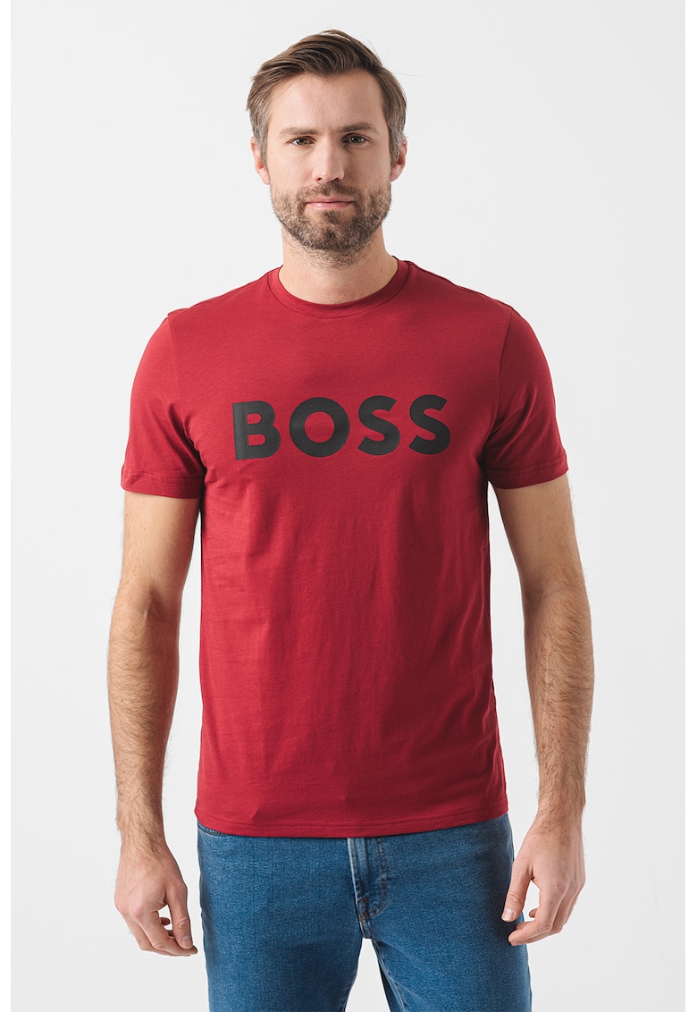 - rosu inchis Imprimeu: logo Material: bumbac Croiala: regular fit Model: decolteu la baza gatului Lungime maneca: maneca scurta Compozitie Exterior: 100% bumbac Info model Modelul poarta un produs de marimea M. Marimi model: 189 cm inaltime