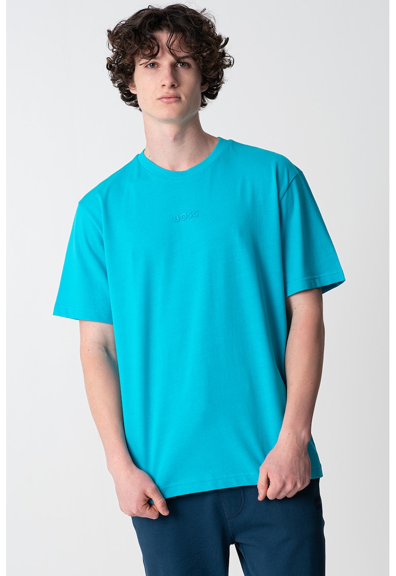 Caracteristici Culoare: albastru deschis Imprimeu: logo Material: bumbac Croiala: regular fit Model: decolteu la baza gatului Lungime maneca: maneca medie Compozitie Exterior: 100% bumbac Info model Modelul poarta un produs de marimea M. Marimi model: 189 cm inaltime