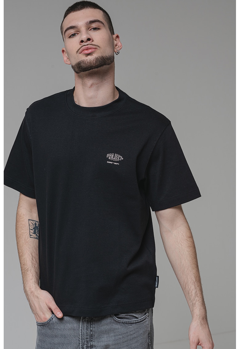 Caracteristici Culoare: negru Imprimeu: grafic Material: bumbac Croiala: regular fit Model: decolteu la baza gatului Lungime maneca: maneca scurta Compozitie Exterior: 100% bumbac Info model Modelul poarta un produs de marimea S. Marimi model: 190 cm inaltime