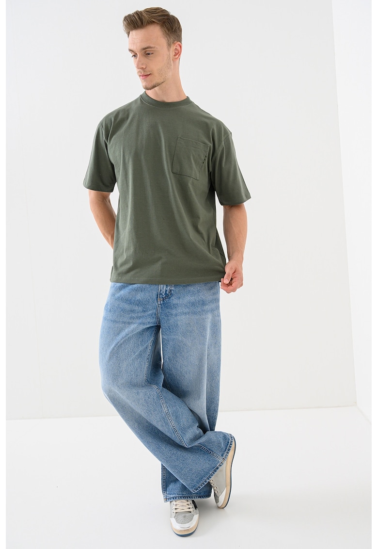 Caracteristici Culoare: verde inchis Imprimeu: uni Material: bumbac organic Croiala: lejer Model: decolteu la baza gatului Lungime maneca: maneca scurta Buzunare: unul aplicat pe piept Compozitie Exterior: 100% bumbac organic Info model Modelul poarta un produs de marimea M. Marimi model: 191 cm inaltime