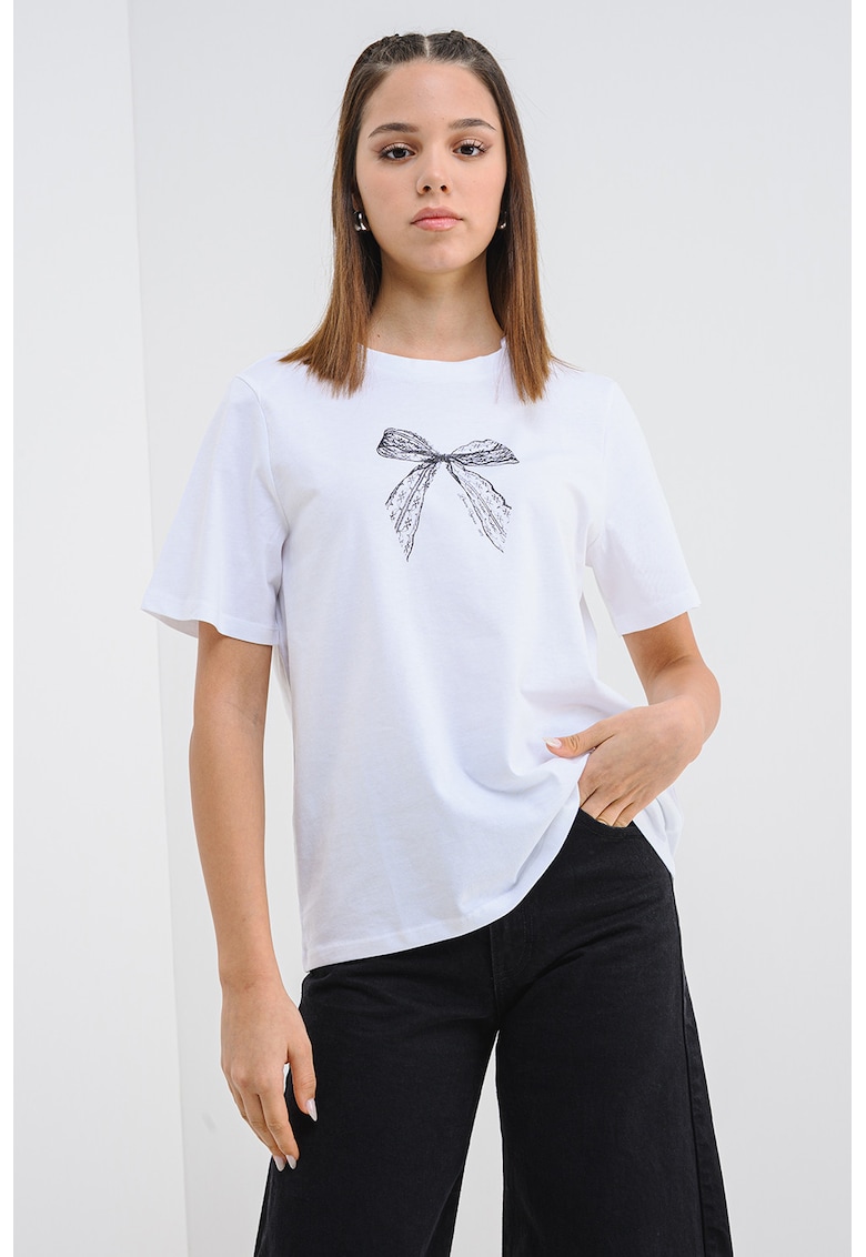 - alb optic Imprimeu: uni Material: bumbac organic Croiala: regular fit Model: decolteu la baza gatului Lungime maneca: maneca scurta Compozitie Exterior: 100% bumbac organic Info model Modelul poarta un produs de marimea S. Marimi model: 174 cm inaltime