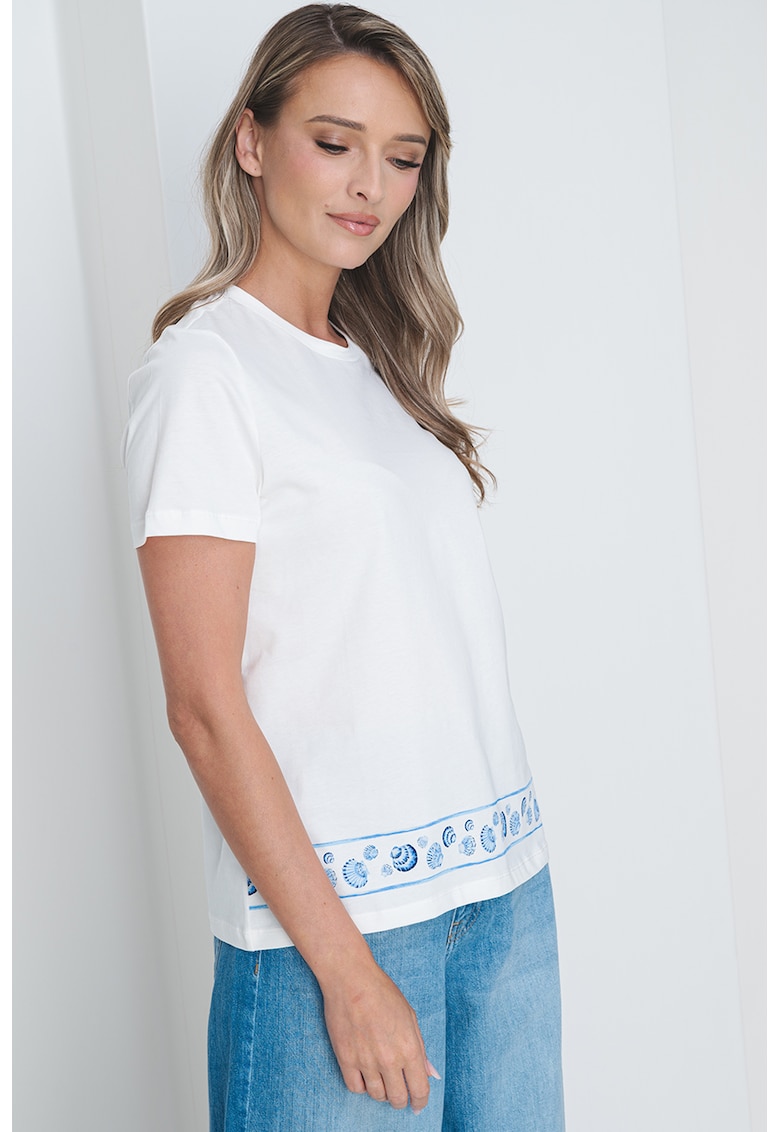 - albastru deschis Imprimeu: grafic Material: bumbac organic Croiala: regular fit Model: decolteu la baza gatului Lungime maneca: maneca scurta Compozitie Exterior: 100% bumbac organic Info model Modelul poarta un produs de marimea S. Marimi model: 174 cm inaltime