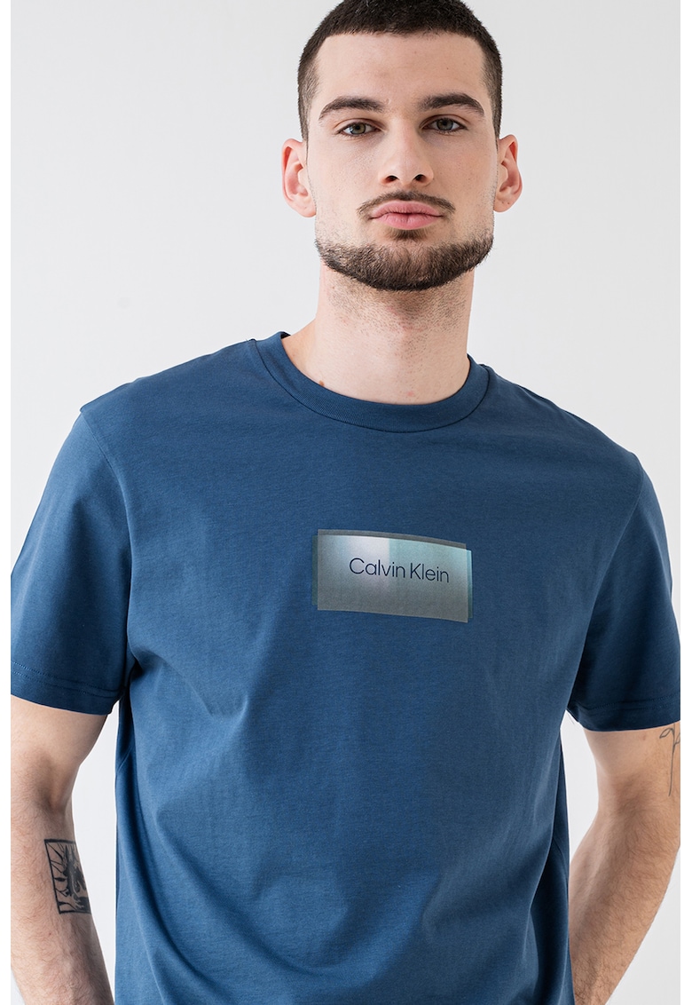 Caracteristici Culoare: albastru prafuit Imprimeu: logo Material: bumbac organic Croiala: regular fit Model: decolteu la baza gatului Lungime maneca: maneca scurta Compozitie Exterior: 100% bumbac organic Info model Modelul poarta un produs de marimea M. Marimi model: 190 cm inaltime