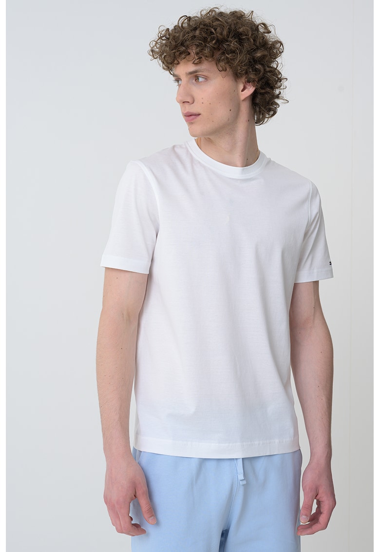 Caracteristici Culoare: alb optic Imprimeu: uni Material: bumbac organic Croiala: regular fit Model: decolteu la baza gatului Lungime maneca: maneca scurta Compozitie Exterior: 100% bumbac organic Info model Modelul poarta un produs de marimea M. Marimi model: 190 cm inaltime