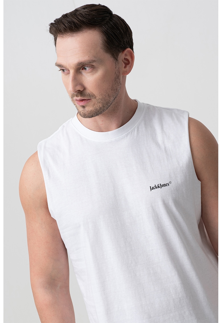 - negru stins Imprimeu: grafic Material: bumbac Croiala: regular fit Model: decolteu la baza gatului Lungime maneca: fara maneca Compozitie Exterior: 100% bumbac Info model Modelul poarta un produs de marimea M. Marimi model: 188 cm inaltime