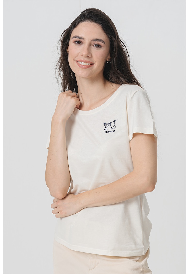 - bej Imprimeu: grafic Material: bumbac Croiala: lejer Model: rotund Lungime maneca: maneca scurta Compozitie Exterior: 100% bumbac Info model Modelul poarta un produs de marimea S. Marimi model: 177 cm inaltime