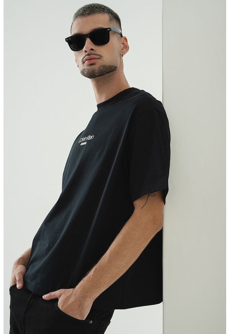 - negru Imprimeu: logo Material: bumbac Croiala: lejer Model: decolteu la baza gatului Lungime maneca: maneca scurta Compozitie Exterior: 100% bumbac Info model Modelul poarta un produs de marimea M. Marimi model: 190 cm inaltime