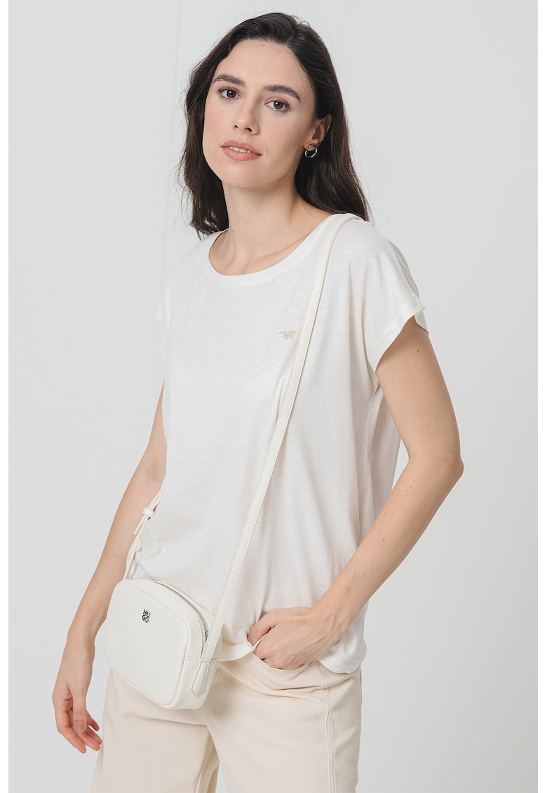 - crem Imprimeu: logo Material: bumbac Croiala: lejer Model: decolteu la baza gatului Lungime maneca: maneca scurta Compozitie Exterior: 100% bumbac Info model Modelul poarta un produs de marimea S. Marimi model: 177 cm inaltime