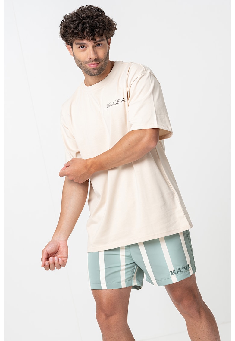Caracteristici Culoare: bej Imprimeu: logo Material: bumbac Croiala: lejer Model: rotund Lungime maneca: maneca scurta Compozitie Exterior: 100% bumbac Info model Modelul poarta un produs de marimea M. Marimi model: 179 cm inaltime