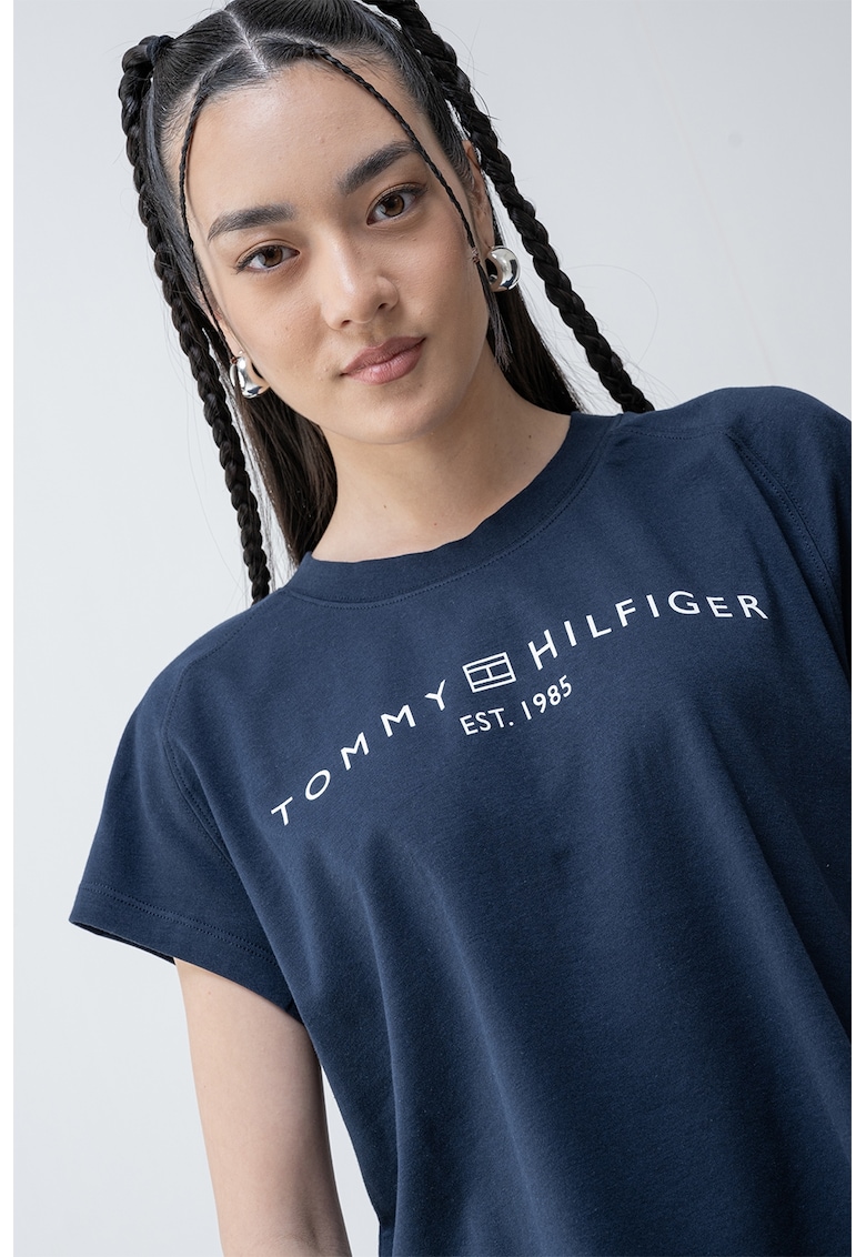 - bleumarin Imprimeu: uni Material: bumbac Croiala: lejer Model: decolteu la baza gatului Lungime maneca: maneca scurta Compozitie Exterior: 100% bumbac Info model Modelul poarta un produs de marimea S. Marimi model: 170 cm inaltime