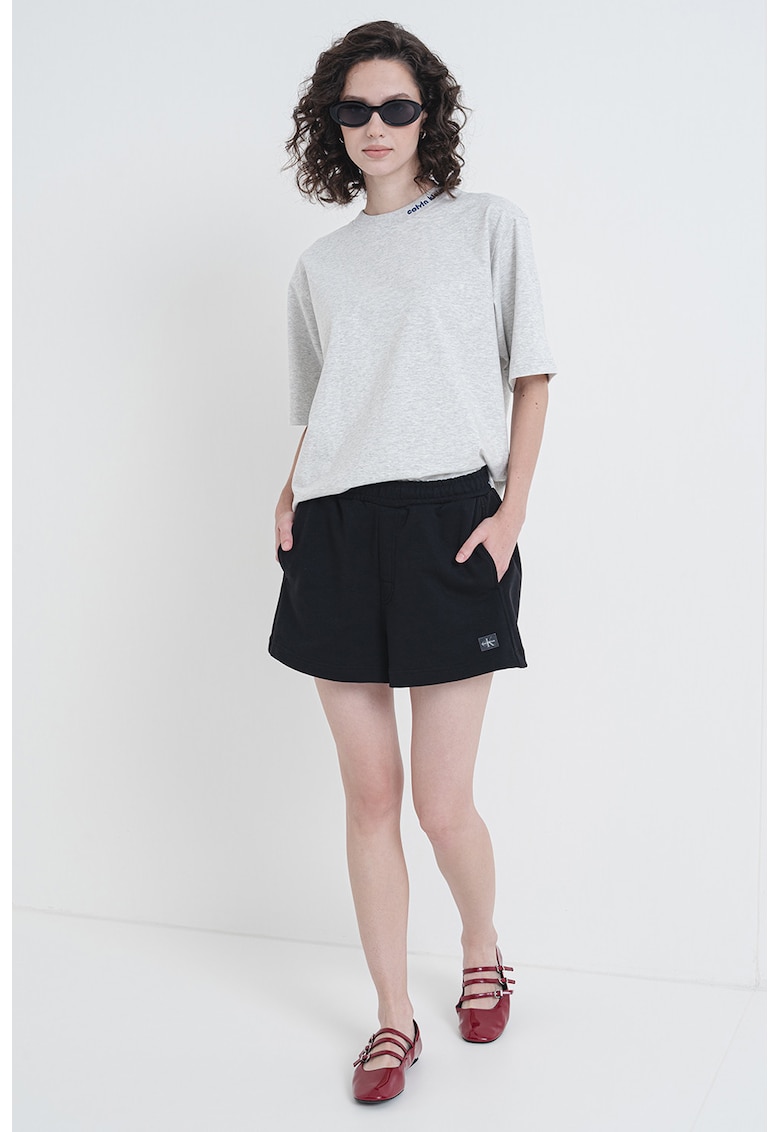 Caracteristici Culoare: gri deschis Imprimeu: uni Material: bumbac Croiala: lejer Model: decolteu la baza gatului Lungime maneca: maneca scurta Detalii: aplicatie discreta cu logo Compozitie Exterior: 100% bumbac Info model Modelul poarta un produs de marimea S. Marimi model: 177 cm inaltime