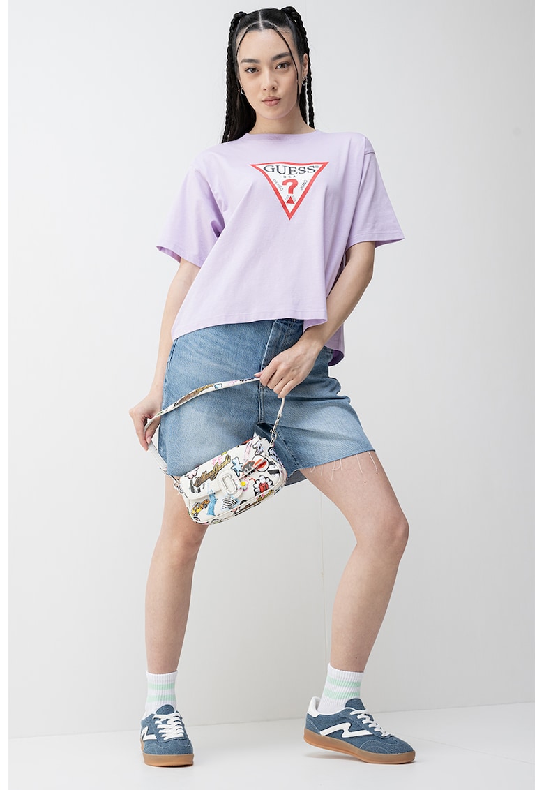 Caracteristici Culoare: lila Imprimeu: logo Material: bumbac Croiala: lejer Model: decolteu la baza gatului Lungime maneca: maneca scurta Compozitie Exterior: 100% bumbac Info model Modelul poarta un produs de marimea S. Marimi model: 170 cm inaltime
