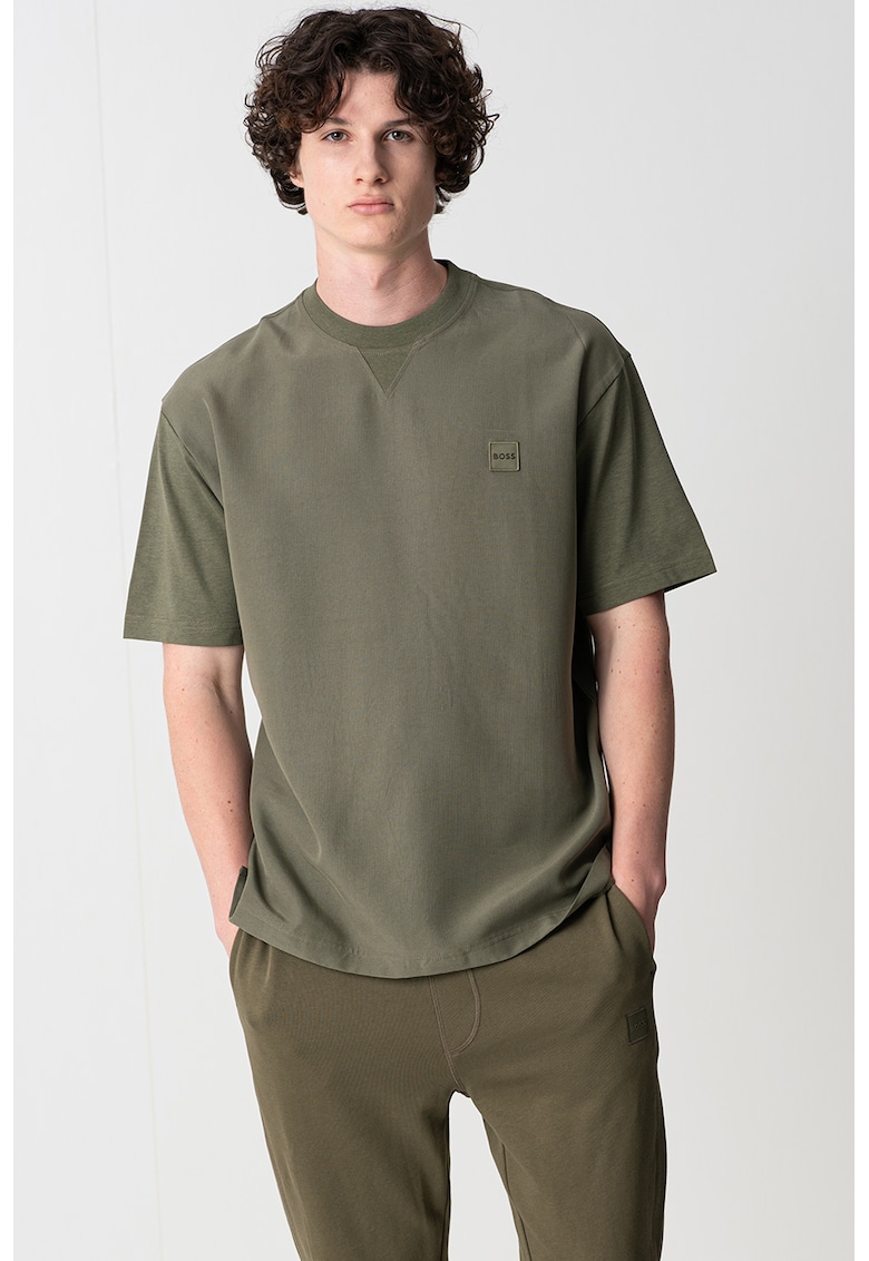 Caracteristici Culoare: verde marin Imprimeu: uni Material: bumbac Croiala: lejer Model: decolteu la baza gatului Lungime maneca: maneca scurta Compozitie Exterior: 100% bumbac Info model Modelul poarta un produs de marimea M. Marimi model: 189 cm inaltime