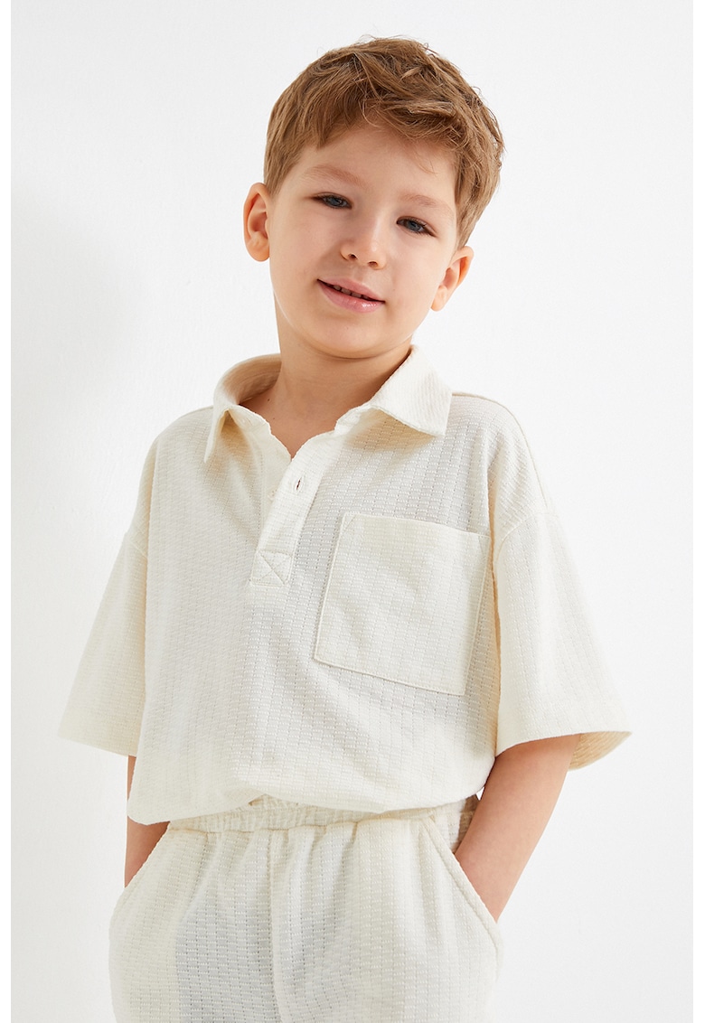 - fibre sintetice Imprimeu: uni Croiala: lejer Guler: polo Lungime maneca: maneca scurta Detalii: aspect texturat