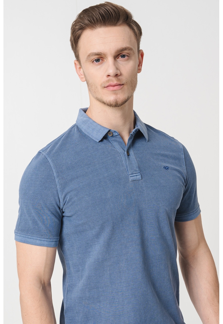 Caracteristici Culoare: albastru prafuit Imprimeu: uni Material: bumbac Croiala: regular fit Model: polo Lungime maneca: maneca scurta Compozitie Exterior: 100% bumbac Info model Modelul poarta un produs de marimea M. Marimi model: 191 cm inaltime