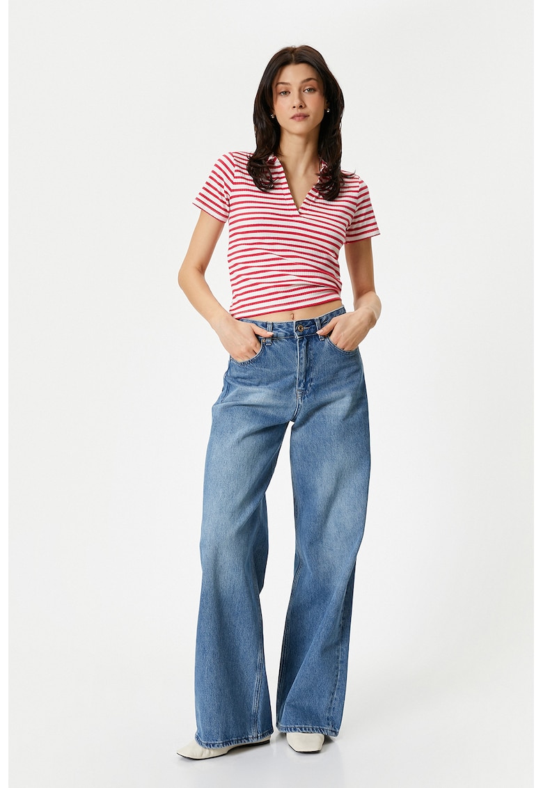 - viscoza Croiala: crop Model: polo Lungime maneca: maneca scurta Detalii: aspect striat Compozitie Exterior: 61% poliester