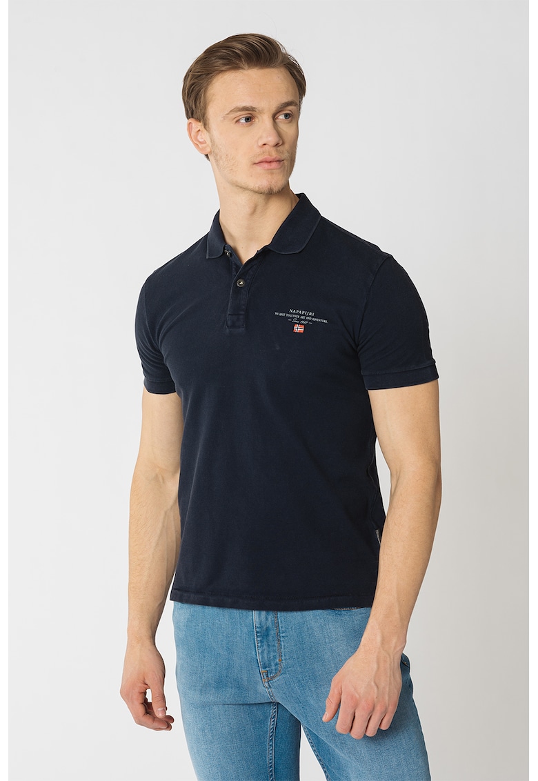 Caracteristici Culoare: bleumarin Imprimeu: logo Material: bumbac Croiala: regular fit Model: polo Lungime maneca: maneca scurta Detalii: fenta scurta cu nasturi