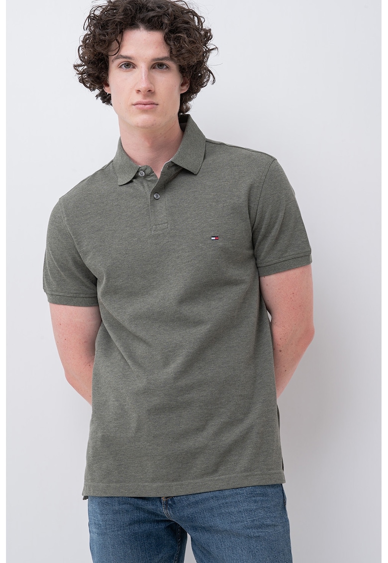 Caracteristici Culoare: verde melange Imprimeu: uni Material: bumbac organic Croiala: regular fit Model: polo Lungime maneca: maneca scurta Detalii: fenta scurta cu nasturi