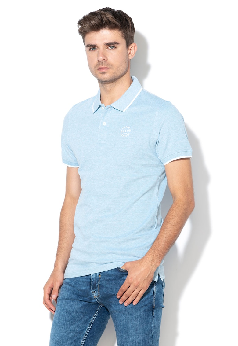 Caracteristici Culoare: albastru prafuit Imprimeu: logo Material: pique Croiala: regular fit Model: polo Guler: polo Lungime maneca: maneca scurta Detalii: guler si mansete contrastante