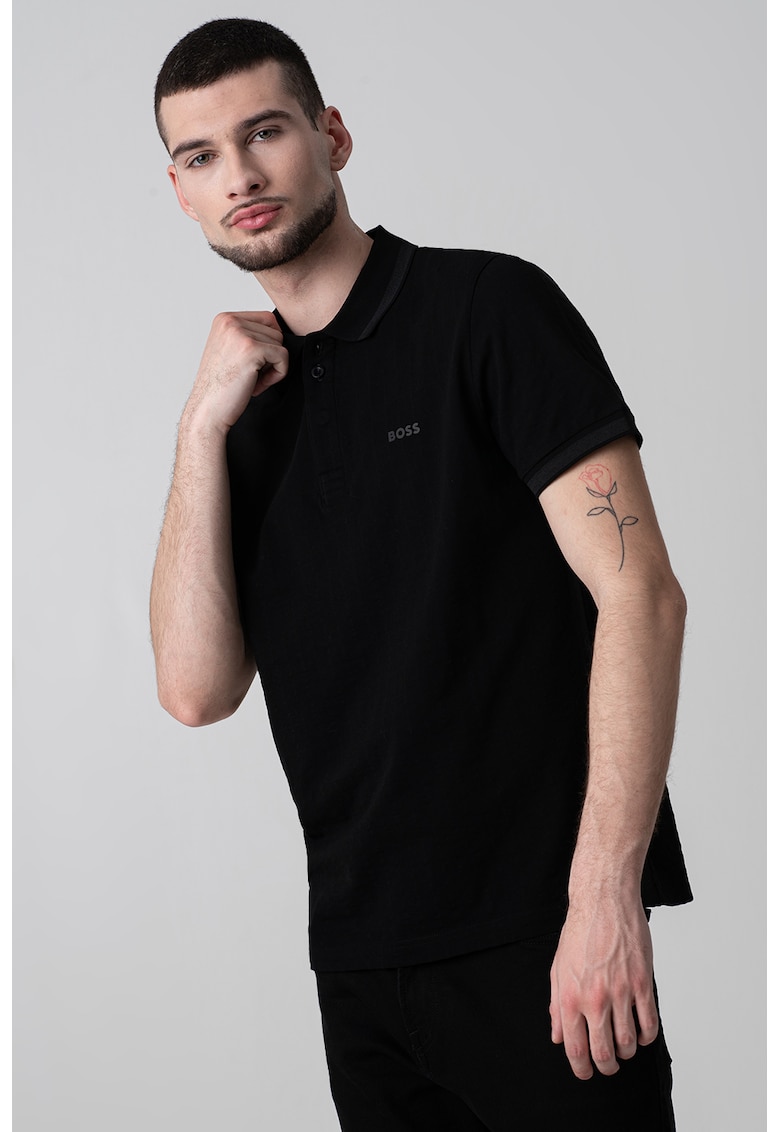 Caracteristici Culoare: negru Imprimeu: uni Material: bumbac Croiala: regular fit Model: polo Lungime maneca: maneca scurta Detalii: fenta scurta cu nasturi Compozitie Exterior: 100% bumbac Info model Modelul poarta un produs de marimea M. Marimi model: 190 cm inaltime