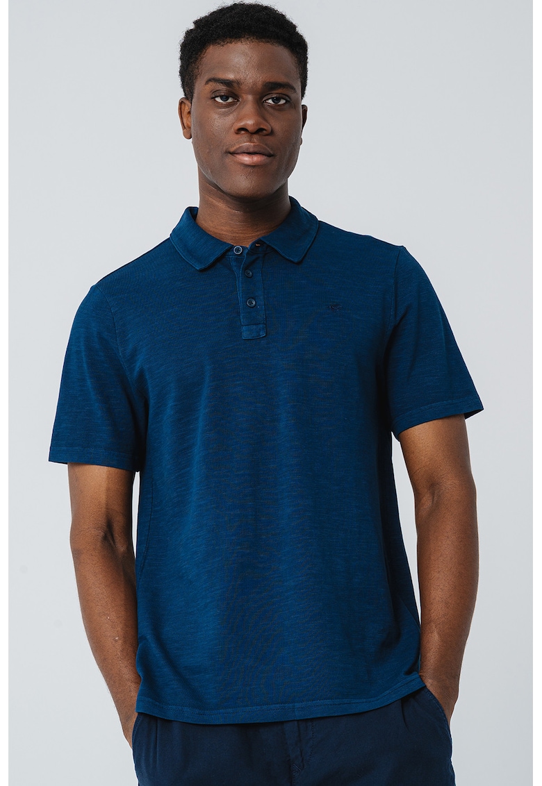 - bleumarin Imprimeu: uni Material: bumbac Croiala: regular fit Model: polo Lungime maneca: maneca scurta Compozitie Exterior: 100% bumbac Info model Modelul poarta un produs de marimea M. Marimi model: 184 cm inaltime