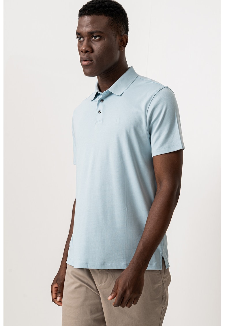 Caracteristici Culoare: albastru glaciar Imprimeu: uni Material: bumbac Croiala: regular fit Model: polo Guler: ascutit Lungime maneca: maneca scurta Compozitie Exterior: 100% bumbac Info model Modelul poarta un produs de marimea M. Marimi model: 184 cm inaltime