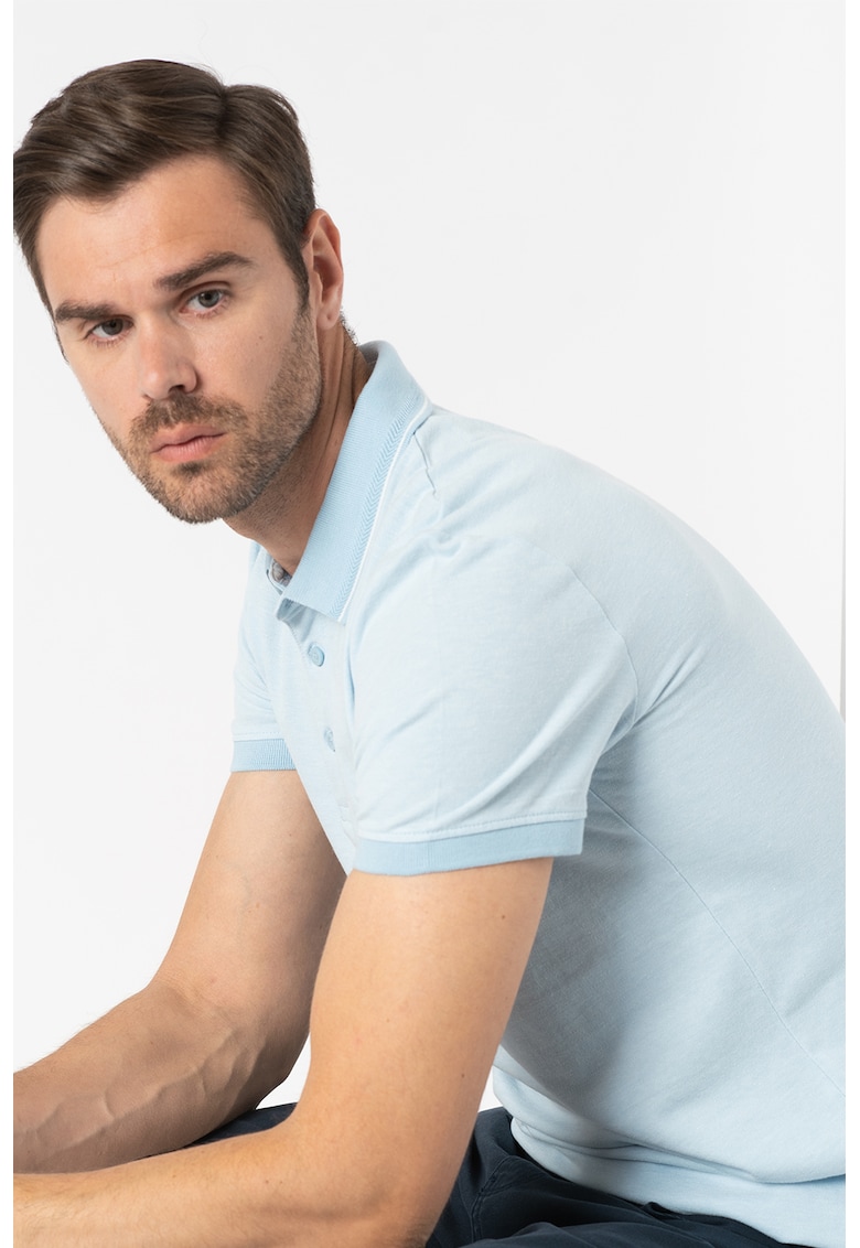 Caracteristici Culoare: albastru pastel Imprimeu: uni Material: bumbac Croiala: regular fit Model: polo Lungime maneca: maneca scurta Detalii: slituri laterale
