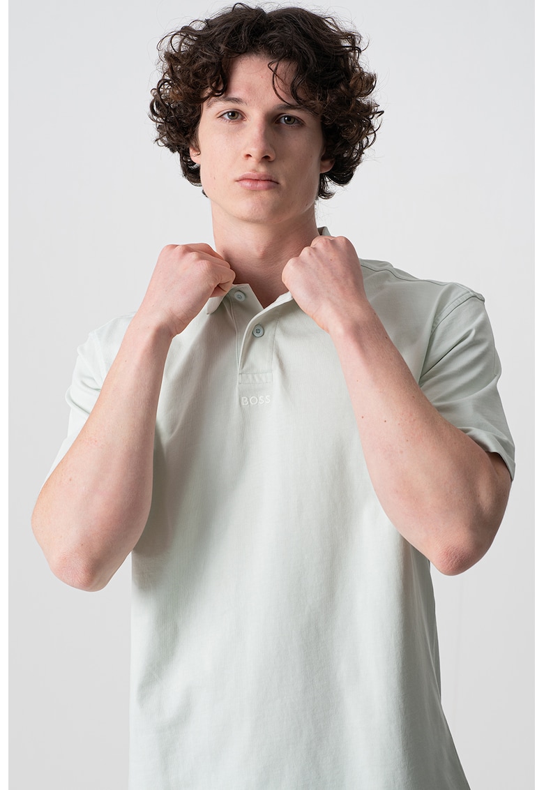 Caracteristici Culoare: albastru deschis Imprimeu: logo Material: bumbac Croiala: lejer Model: polo Lungime maneca: maneca medie Compozitie Exterior: 100% bumbac Info model Modelul poarta un produs de marimea M. Marimi model: 189 cm inaltime