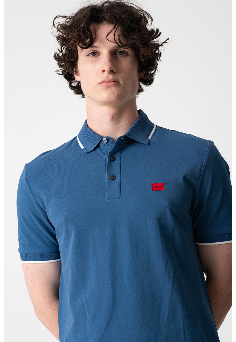 - albastru pastel Imprimeu: logo Material: bumbac Croiala: slim fit Model: polo Lungime maneca: maneca scurta Detalii: aplicatie cu logo Compozitie Exterior: 100% bumbac Info model Modelul poarta un produs de marimea M. Marimi model: 189 cm inaltime