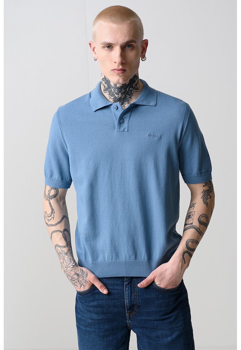 Caracteristici Culoare: albastru lavanda Imprimeu: uni Material: bumbac Croiala: regular fit Model: polo Lungime maneca: maneca scurta Detalii: fenta cu nasturi Compozitie Exterior: 85% bumbac