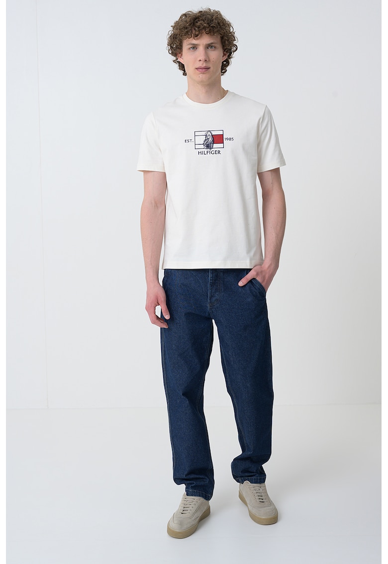 Caracteristici Culoare: alb fildes Imprimeu: logo Material: bumbac Croiala: regular fit Model: decolteu la baza gatului Lungime maneca: maneca scurta Compozitie Exterior: 100% bumbac Info model Modelul poarta un produs de marimea M. Marimi model: 190 cm inaltime