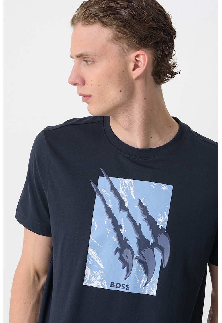 - albastru deschis Imprimeu: grafic Material: bumbac Croiala: regular fit Model: decolteu la baza gatului Lungime maneca: fara maneca Compozitie Exterior: 100% bumbac Info model Modelul poarta un produs de marimea M. Marimi model: 170 cm inaltime