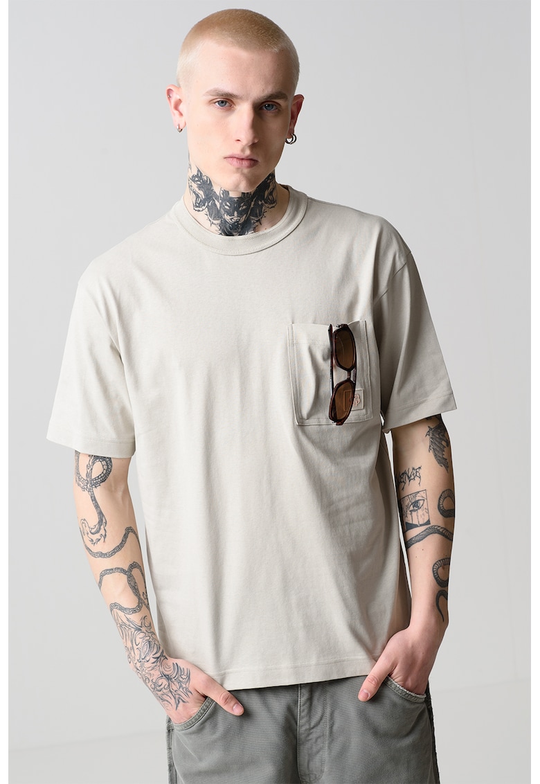 Caracteristici Culoare: verde pal Imprimeu: logo Material: bumbac Croiala: regular fit Model: decolteu la baza gatului Lungime maneca: maneca scurta Compozitie Exterior: 100% bumbac Info model Modelul poarta un produs de marimea M. Marimi model: 188 cm inaltime