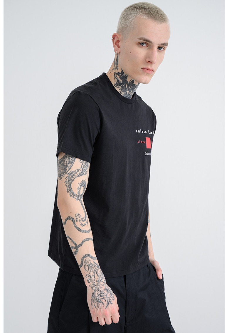 - negru Imprimeu: logo Material: bumbac Croiala: regular fit Model: decolteu la baza gatului Lungime maneca: maneca scurta Compozitie Exterior: 100% bumbac Info model Modelul poarta un produs de marimea M. Marimi model: 188 cm inaltime