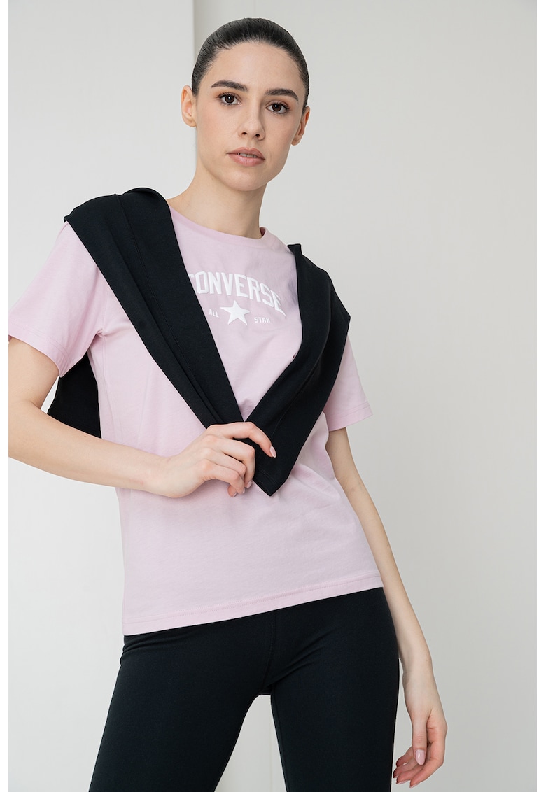 - roz pastel Imprimeu: logo Material: bumbac Croiala: regular fit Model: decolteu la baza gatului Lungime maneca: maneca scurta Compozitie Exterior: 100% bumbac Info model Modelul poarta un produs de marimea S. Marimi model: 177 cm inaltime