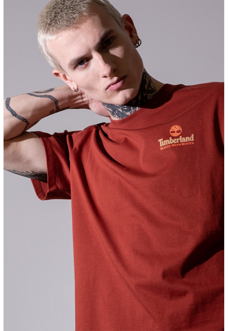 Caracteristici Culoare: caramiziu Imprimeu: logo Material: bumbac Croiala: regular fit Model: decolteu la baza gatului Lungime maneca: maneca scurta Compozitie Exterior: 100% bumbac Info model Modelul poarta un produs de marimea M. Marimi model: 188 cm inaltime