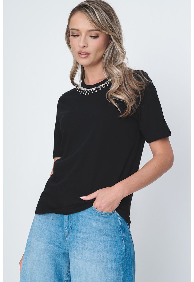 Caracteristici Culoare: negru Imprimeu: uni Material: bumbac Croiala: regular fit Model: decolteu la baza gatului Lungime maneca: maneca scurta Compozitie Exterior: 100% bumbac organic Info model Modelul poarta un produs de marimea S. Marimi model: 174 cm inaltime