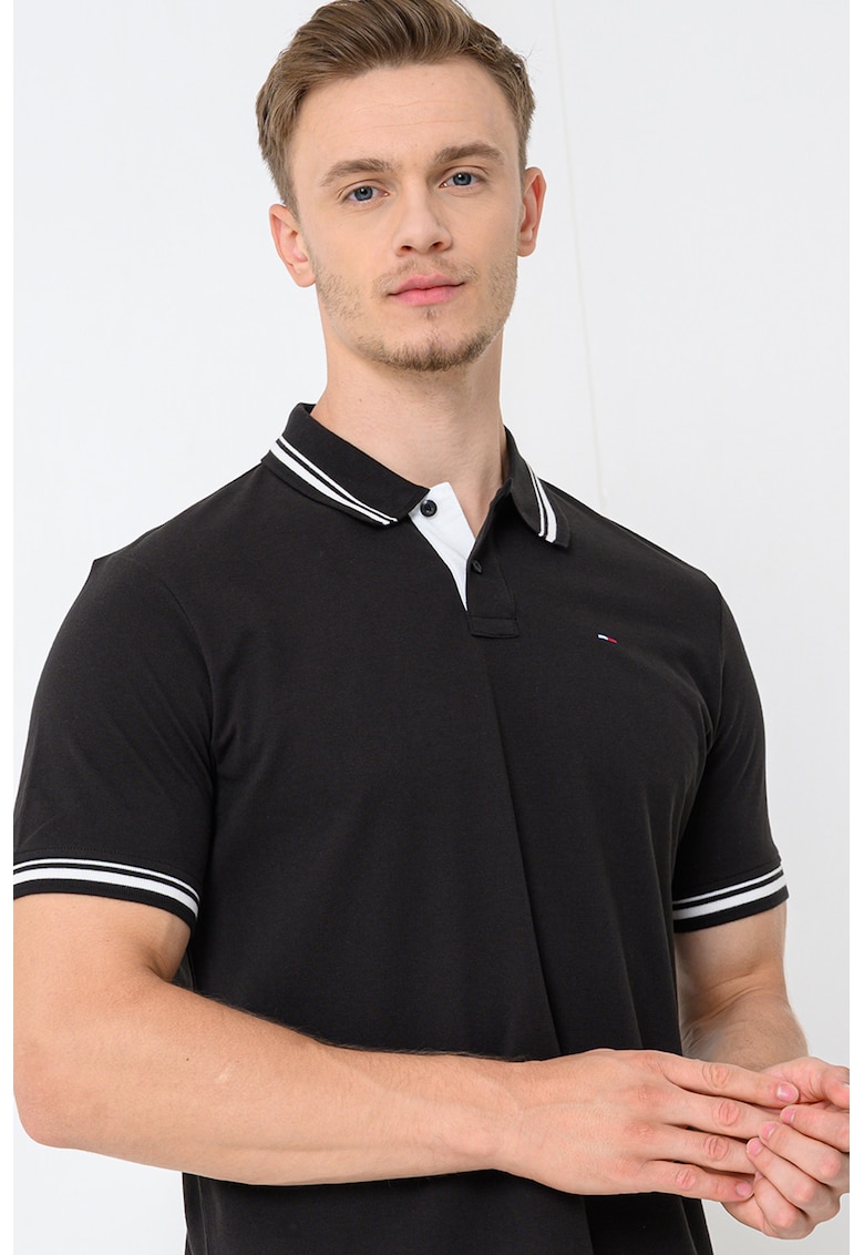- negru Imprimeu: uni Material: bumbac Croiala: regular fit Model: polo Guler: polo Lungime maneca: maneca scurta Detalii: fenta scurta cu nasturi