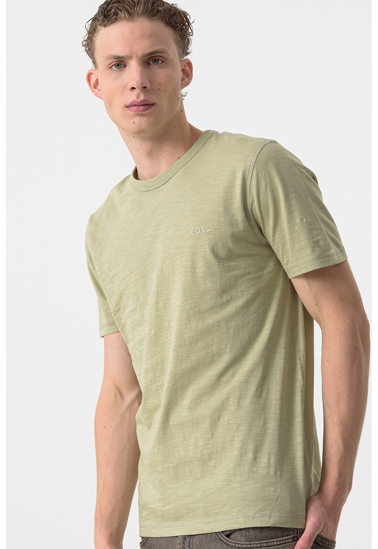 Caracteristici Culoare: verde marin Imprimeu: uni Material: bumbac Croiala: regular fit Model: rotund Lungime maneca: maneca scurta Detalii: logo discret Compozitie Exterior: 100% bumbac Info model Modelul poarta un produs de marimea M. Marimi model: 170 cm inaltime