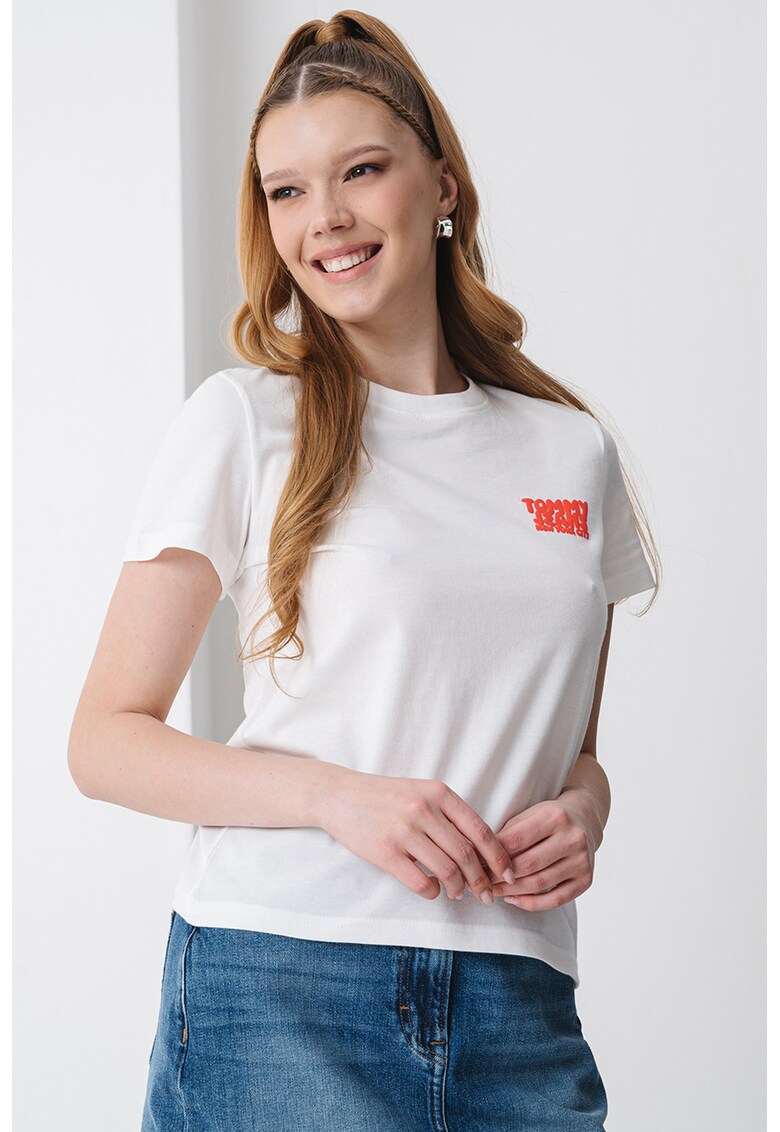 - rosu vermillion Imprimeu: logo Material: bumbac Croiala: regular fit Model: decolteu la baza gatului Lungime maneca: maneca scurta Compozitie Exterior: 100% bumbac organic Info model Modelul poarta un produs de marimea S. Marimi model: 176 cm inaltime