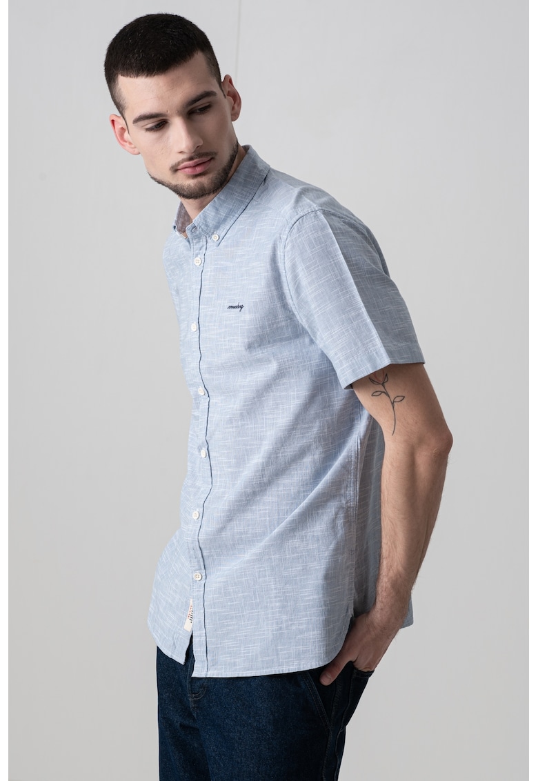 - albastru Material: bumbac Imprimeu: uni Stil: casual Croiala: regular fit Guler: clasic Lungime maneca: maneca scurta Sistem inchidere: nasturi Compozitie Exterior: 100% bumbac Info model Modelul poarta un produs de marimea S. Marimi model: 190 cm inaltime