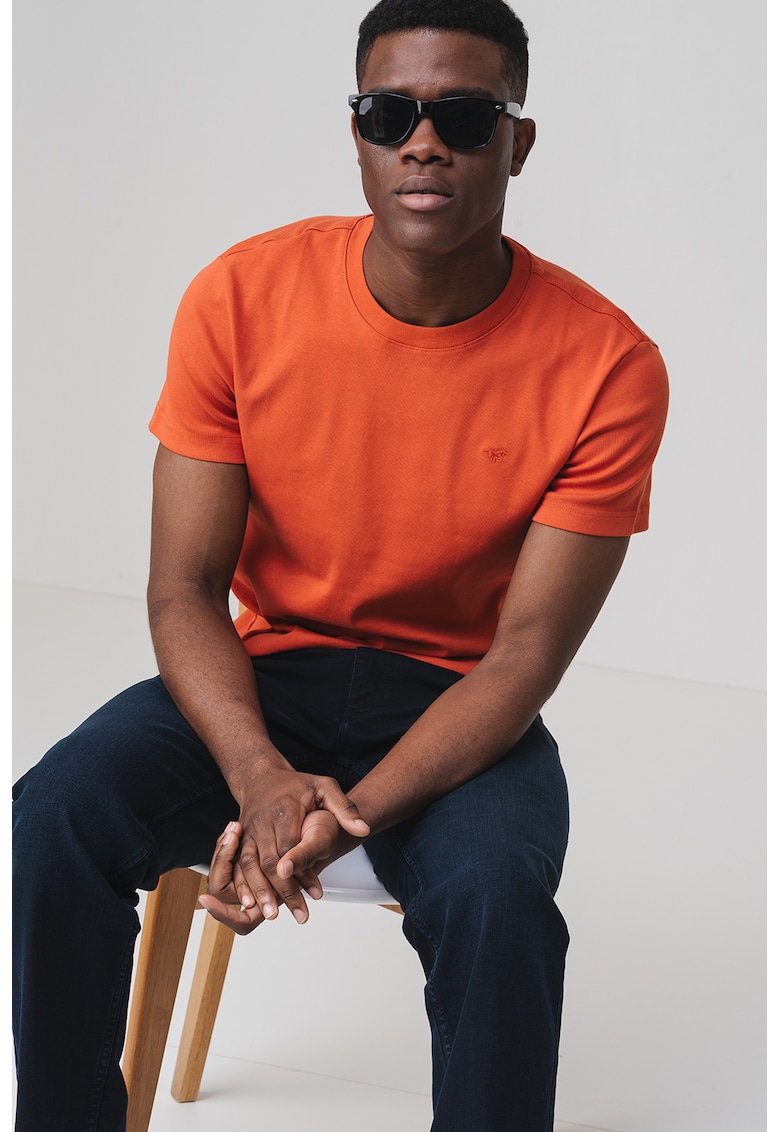 Caracteristici Culoare: portocaliu Imprimeu: uni Material: bumbac Croiala: slim fit Model: decolteu la baza gatului Lungime maneca: maneca scurta Compozitie Exterior: 100% bumbac Info model Modelul poarta un produs de marimea M. Marimi model: 184 cm inaltime