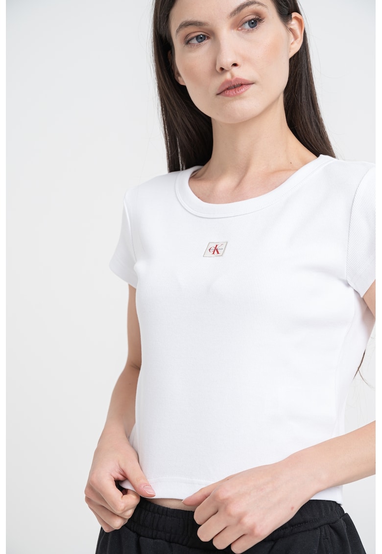 Caracteristici Culoare: alb Imprimeu: uni Material: bumbac Croiala: slim fit Model: rotund Lungime maneca: maneca scurta Detalii: aplicatie logo discreta Compozitie Exterior: 100% bumbac Info model Modelul poarta un produs de marimea S. Marimi model: 176 cm inaltime